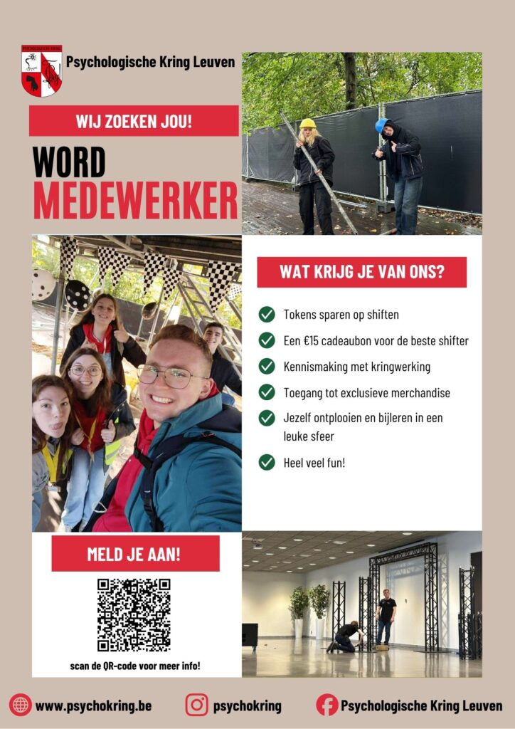 Onze kring staat of valt met gemotiveerde vrijwilligers. Als medewerker kan je ons helpen tijdens onze evenementen. Op deze manier krijg je een eerste introductie met onze werking en hoe alles er achter de schermen aan toe gaat. Zin om te helpen in ruil voor leuke beloningen en superfijne sociale contacten?