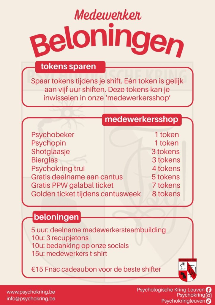 Wij zijn de studentenvereniging voor de studenten Psychologie en de Educatieve Master in de gedragswetenschappen aan de KU Leuven. Bestaande uit diverse teams, met elk hun eigen verantwoordelijkheid, vormen we samen een enthousiaste groep studentenvertegenwoordigers. We staan in voor onze studenten op academisch vlak, en zorgen voor de nodige ontspanning. Zo organiseren we cantussen en fakfeesten, maar ook grotere evenementen zoals ons galabal, de 24 urenloop, et cetera.